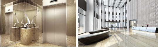 精选18部日立原装高速电梯.3米高的阔绰大堂级精装轿箱最高4m/S高速运行,智能IC卡梯控系统,无需按钮,即可轻松直达指定楼层。