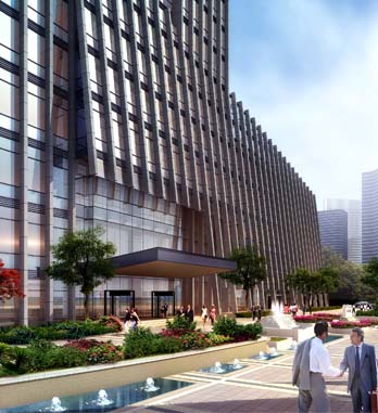 外立面: 高档石材玻璃幕墙,Low—e夹胶中空玻璃