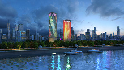 晚间两栋建筑将会化身炫目的LED大屏,展示各类主题的动漫。
