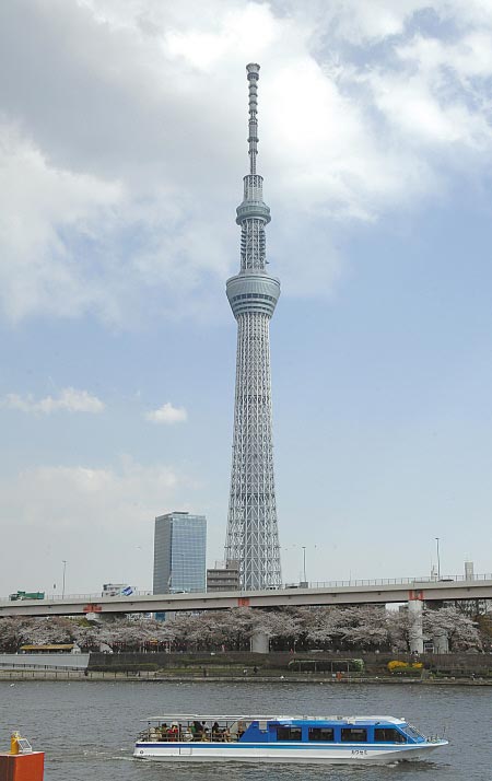 位于日本东京墨田区的世界最高自立式电波塔“天空树”22日开始营业,和附属的商业设施“天空街”加在一起,预计每年游客可达3200万人,在首都圈有可能成为仅次于东京迪斯尼乐园的观光地。