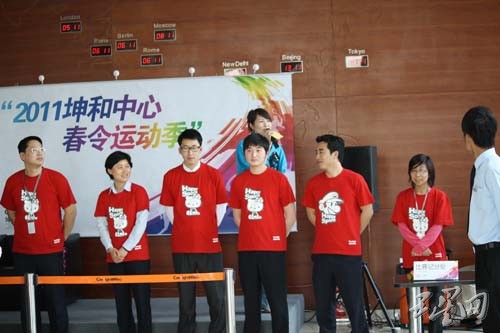 2011年4月至6月,坤和中心联合下城区天水街道,共同举办了“快乐运动,健康办公——春令运动季”系列主题活动,得到了大楼租户的积极参与和广泛支持。“十分给力”拔河赛 、“我是擂主” 键子挑战赛、 “和健身教练面对面”沙龙、“越跳越美丽”跳绳比赛、“国手谁怕谁”乒乓球比赛,五大主题活动进行得有声有色,令我们共同享有一个缤纷多彩的绚烂运动季。