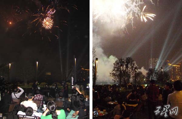 来宾们有来自世界500强的管理者,有各个行业的风云人物。平日里严慎专业的商务人士在这里相聚,他们尽情地欣赏与交流。席间,每一次绚烂绽放都能引来无数的喝彩,许多观赏者纷纷拿出相机拍照或摄像记录,定格这些灿烂的瞬间。一位来宾家属说,这是她第一次如此近距离地观看杭州的烟花大会,大饱眼福,很精彩也很浪漫。