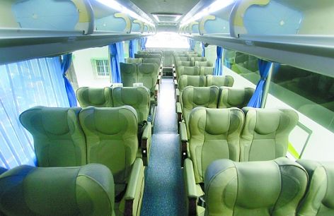 “这是我们新进的凯茨鲍尔豪华大巴,51座,被称作‘陆地航班’。每辆车都有GPS卫星定位系统,能进行实时视频监控,确保行车途中的安全。”杭州长运工作人员介绍说。
