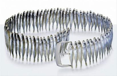 有趣的段子还有一个。有网友看到Fulvio用沙丁鱼制成的优雅、富韵律感的腰带后,不觉手痒,于是到市场里买来许多沙丁鱼,打算“东施效颦”一把,可是费尽心思,无法完工,感叹之余,专程给Fulvio留言。