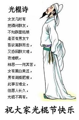 10.今天是光棍节,不要老想着MM哦,小心学习不好,父母用“光溜溜的的棍子”打你哦!