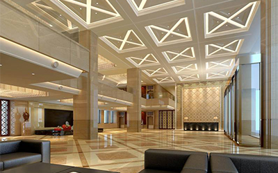 外立面:采用乌克兰进口蓝钻花岗岩及双层夹胶LOW-E玻璃幕墙
