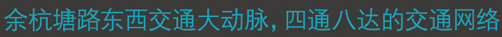 SOHO西城纪北依城市级主干道路——即将开通的余杭塘路,双向6车道,向东连通规划中的香积寺路横贯杭州城市东西部,成为通达杭州东、西部的交通大动脉,有效聚合城东的交通中转大枢纽能量及城西的创智产业及高端商业资源,交通便利。